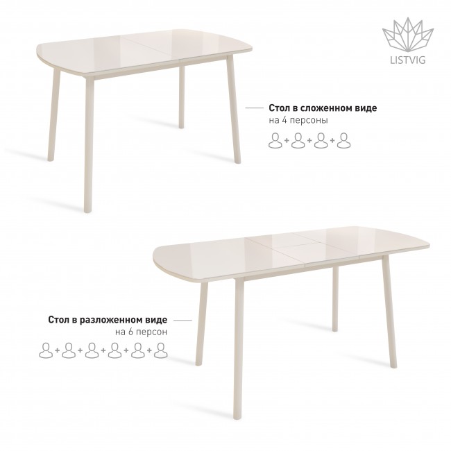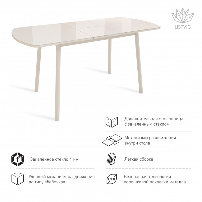 ВИНЕР G стол раздвижной со стеклом Кремовый/Кремовый