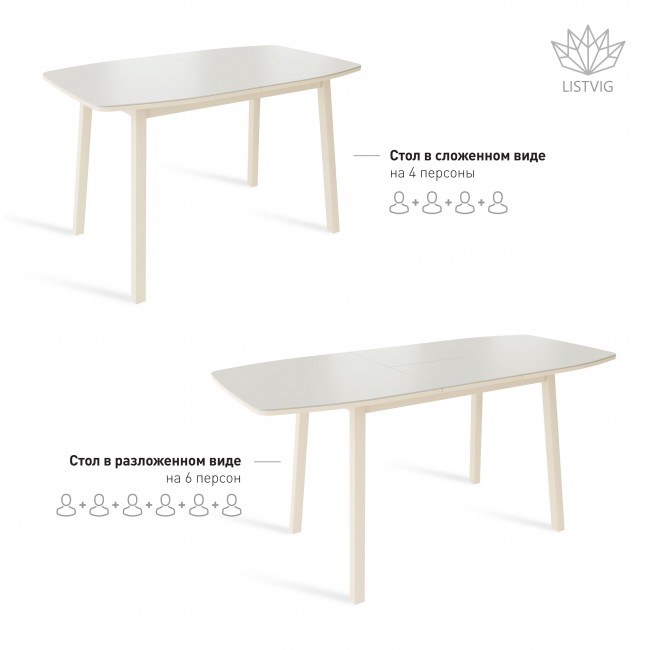 ЛИОН стол раздвижной с матовым стеклом Латте/Кремовый