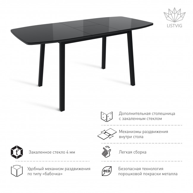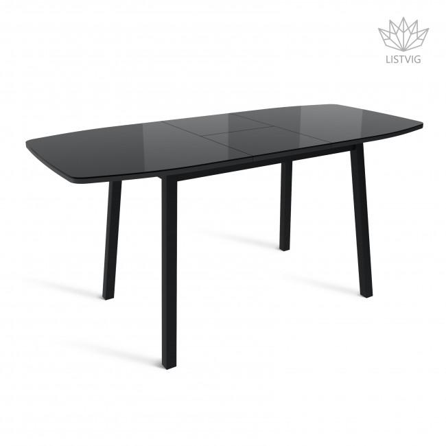 ЛИОН стол раздвижной со стеклом Черный/Черный