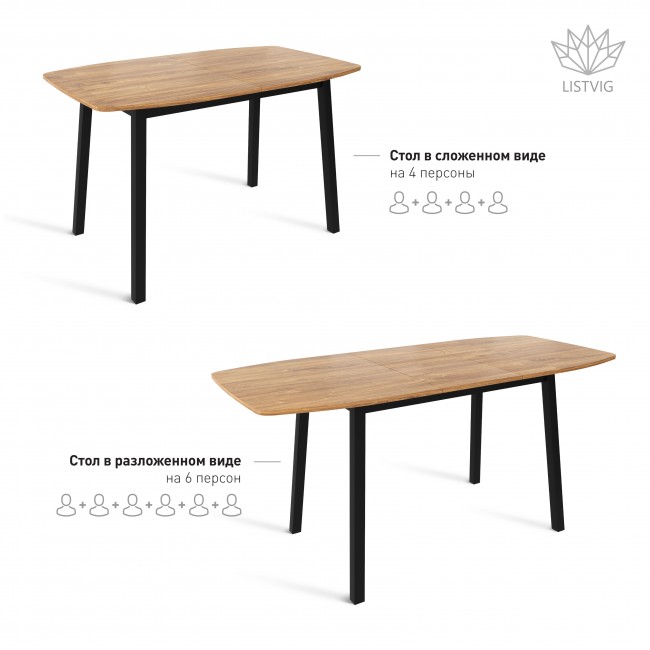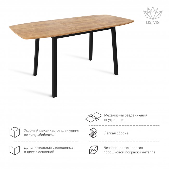 Размер стола (ДхШхВ): 1200 (1520)*700*750. Столешница - ЛДСП, подстолье - ЛДСП, вкладной элемент ЛДСП в цвет основной столешницы, опоры металл покраска. Максимальная нагрузка 100 кг.