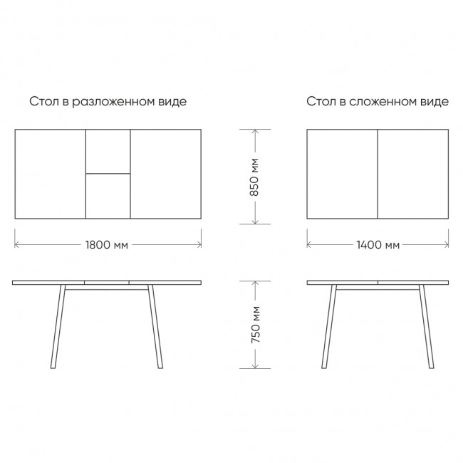 Размер стола (ДхШхВ): 1400 (1800)*850*750. Столешница - ЛДСП, подстолье - металл, вкладной элемент ЛДСП в цвет основной столешницы, опоры металл покраска, основание металл покраска. Максимальная нагрузка 100 кг.